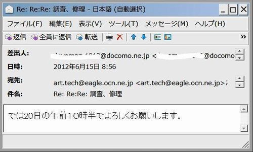その後外出をしてしまい、ご返事が遅くなり失礼しました。
