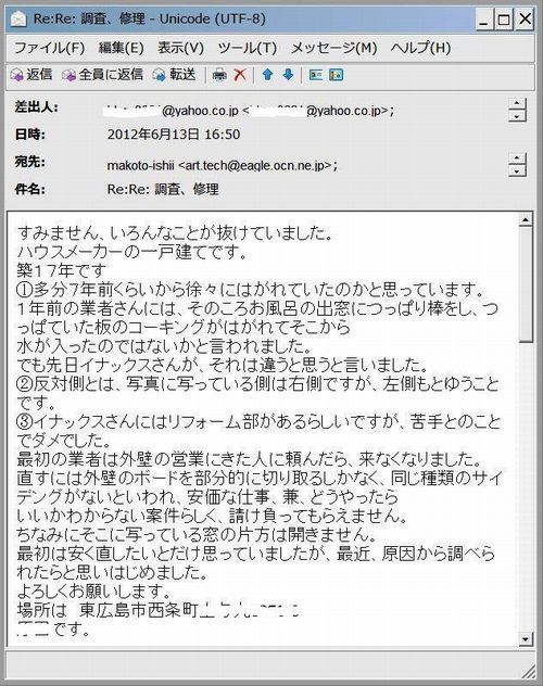下記のレポートは、対策を含めた修理方法を提案をさせて頂いたときの資料です。