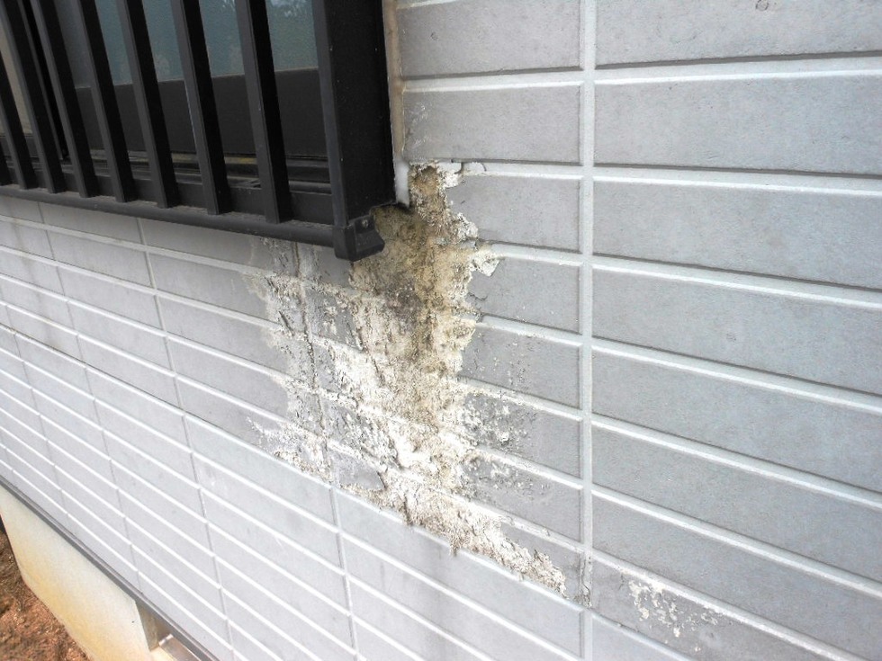 風呂の窓側の外壁が何年も前からはがれおちています。
